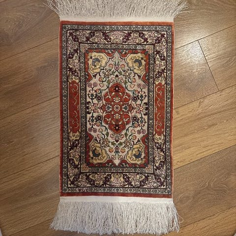 Et smukt håndknyttet Originalt Hereke-silketæppe