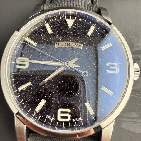 Hermann Stellar Blue PVD - Automatic Swiss Made - Aventurine Bleue - New Full...