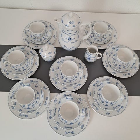 Tallerkenerne er i god stand. Der er ingen skader på porcelænet. Små tegn på slid på guld- og blomsterdekoren forekommer af og til.