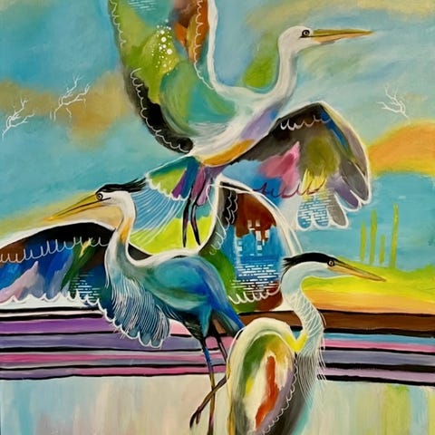 Maleri med køer i flotte farver 100x80 i ramme