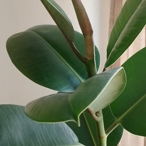 Planterne er primært gummitræ (Ficus elastica) og violinfigen (Fiddle Leaf Fig).
