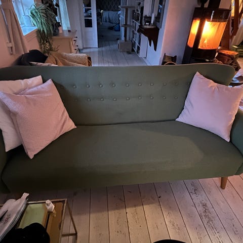 2 sofaer godt brugte sælges. Den ene med synlige huller i betrækket. Den ande i pænere stand. Røgfrit hjem. Giv et bud. Skal hentes hurtigst muligt