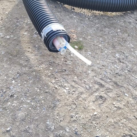 Dobbeltvægget kabelrør for nedgravning af kabler i jord mv. Der er ca 20 meter.