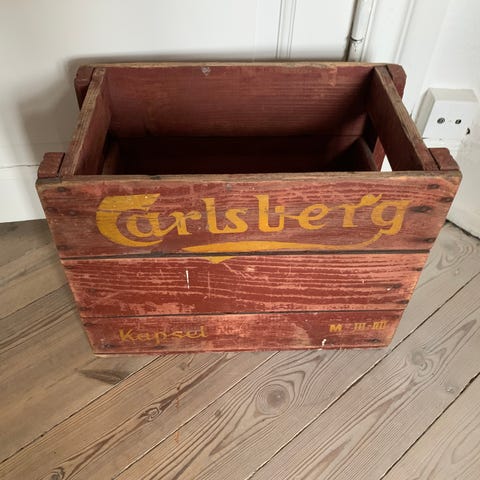 To gamle ølkasser i træ fra Carlsberg og Ceres bryggerier sælges.