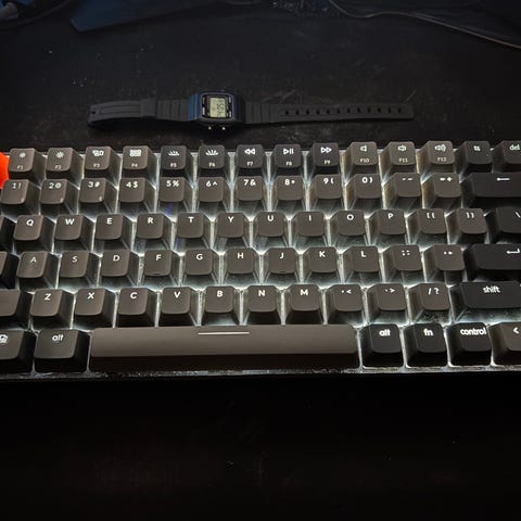 Keychron K6 trådløst mekanisk tastatur med kompakt layout. Tastaturet har mekaniske taster og RGB-belysning under tasterne. Det understøtter trådløs tilslutning.