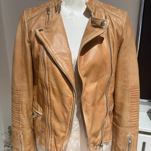Mørkebrun lamp læderjakke str. 38 mrk. viginie castaway - bikerjakke. Hel og pæn