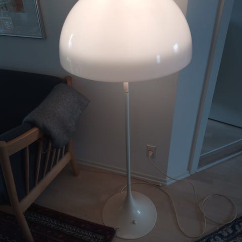 Lampen har brugsspor efter mange års brug herunder misfarvninger(se billede nr. 3) og gulnet på stamme samt knækket midterstykke på stamme(se billede nr. 4).