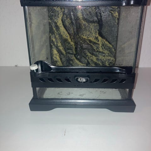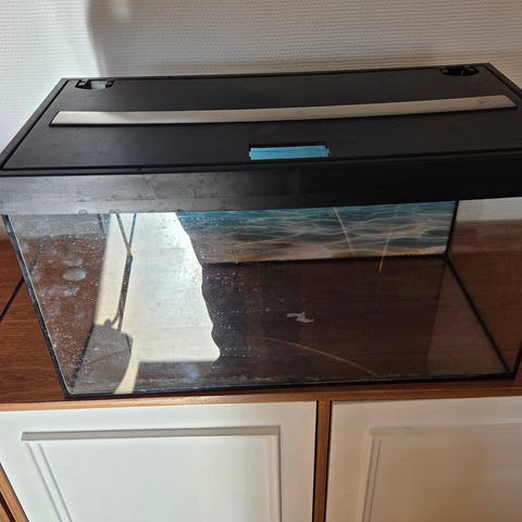 Akvariet har en revne I bunden, så den drypper vand, og skal derfor kun bruges som tør terrarium.