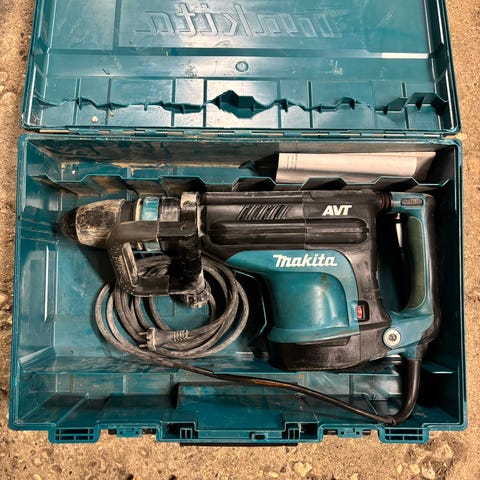 Hitachi H65SB2 mejselhammer på 1340W til nedbrydningsopgaver i beton, murværk og lignende materialer. Ledningsdrevet model med sidehåndtag for bedre kontrol. Leveres i transportkuffert med mejsler som vist på billederne. Velegnet til opgaver som opbrydning af gulve, vægge og andre tunge nedrivningsopgaver.