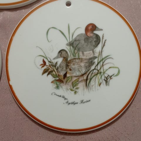 Mads Stage smørebrikker eller platter .Rund porcelæn vægplade med blomster- og sommerfuglemotiv. Pladen har hvid baggrund med farverige botaniske motiver og grøn kant. Der er hul øverst til ophæng, så den kan bruges som vægdekoration eller som dekorativ plade på bord eller hylde.
