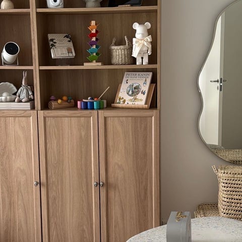 Billy reoler og vitrineskabe sælges.