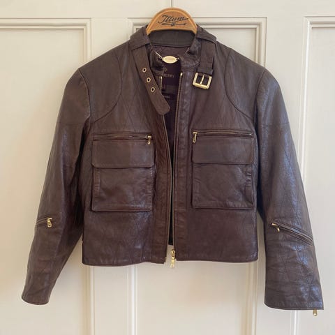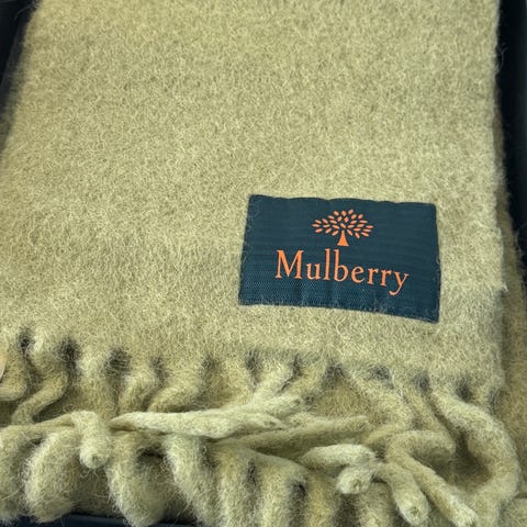 Velholdt Mulberry frakke i størrelse M. Frakken er fremstillet i bomuld og har et multifarvet ternet mønster. Modellen har lynlås og knaplukning foran, krave og cape-lignende overdel, samt lommer foran og en inderlomme med lynlås.
