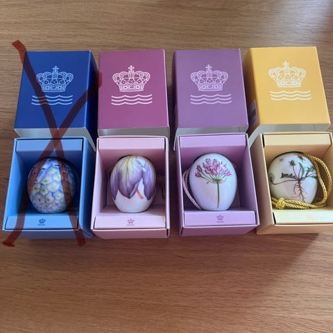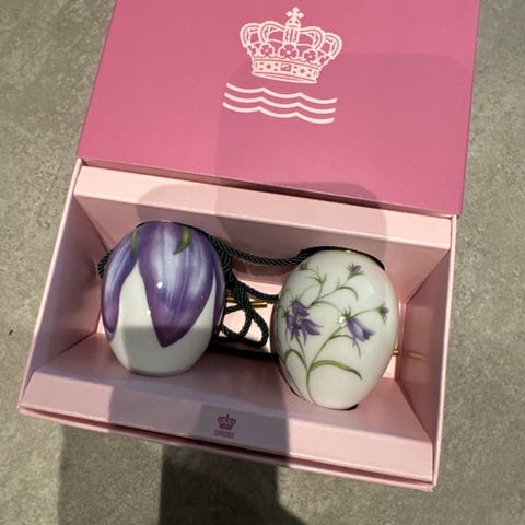 Royal Copenhagen eller Bing & Grøndahl påskeæg porcelænsophæng med vintergæk eller hvid stedmoderblomst motiv og sølvtop ( ikke guldtop) søges ( til Espergærde)