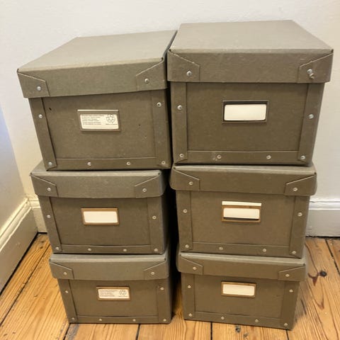 Papirskuffer, Har en større antal papirbakker i sort. De er som nye.