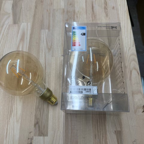 Dekorativ LED-pære fra IKEA i LUNNOM serien sælges. Pæren giver et varmt og hyggeligt lys og passer perfekt i lamper hvor pæren er synlig, fx pendler eller åbne lampeskærme.