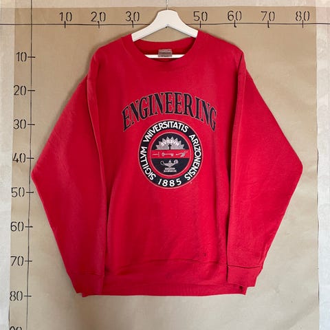 Rød Vintage 90’Er Grafisk Printet Made In USA Engineering Sweatshirt