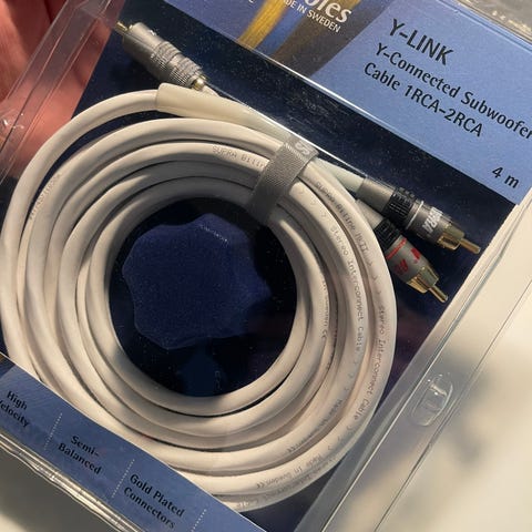 PRIS-MATCH! SUPRA Y-Link phono RCA split-adapterkabel | 1x RCA han - 2x RCA hun (25cm) | Y-split adapter fra Supra der gør det muligt at tilslutte f.eks. to subwoofere til en receiver der kun har en subwoofer indgang.