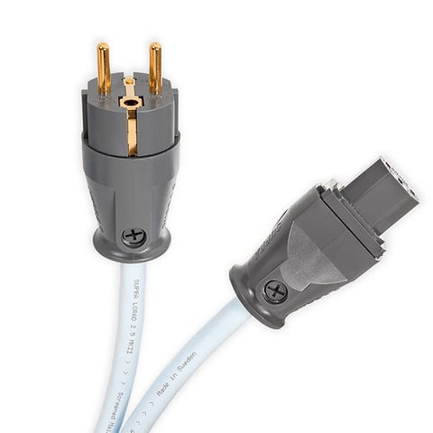 PRIS-MATCH! SUPRA LoRad strømkabel | isblå (Schuko CEE7/7 – C13) | Kvalitets strøm kabel fra Supra, særdeles velegnet til brug i Hi-Fi systemer. Denne udgave har vinklet Shuko han og apparat hun og kabel med 3 x 2.5 mm² ledere.