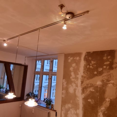 Sælger en loftskinne til lamper inkl. 2 pendeladaptere (Concord / Lumiance). Skinnen er ca. 2 meter lang og passer til 230–240V skinnesystem.