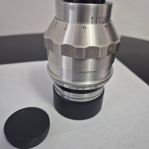 Carl Zeiss T Jena Sonnar 85mm f/2 optik i sølvfarvet metalhus. Fast optik med manuel fokus og flydende blænde. Afstandsskala i meter og feet samt dybdeskarphedsskala på siden af objektivet. Velegnet til brug på kompatible kameraer (CONTAX I, II, IIIA) eller via adapter på digitale systemer, afhængigt af fatning og kameramodel, disse skal dog specialbygges. Dette er en unik og lækker sagt, man skal være velkommen til at komme forbi og bese det.