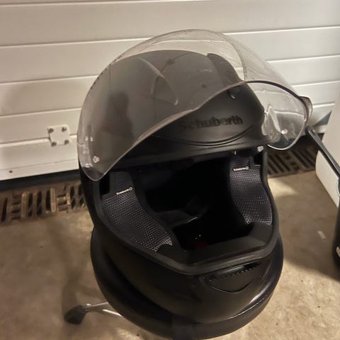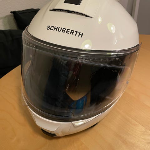 Schuberth C3 Pro motorcykelhjelm / fliphjelm i størrelse 54/55 (S). Hjelmen er en flip-up/klaphjelm med klart visir. Bemærk lille ridse øverst i visiret. Inkl. indbygget solbrille og dustcover. Farven er gul/sort med høj synlighed.