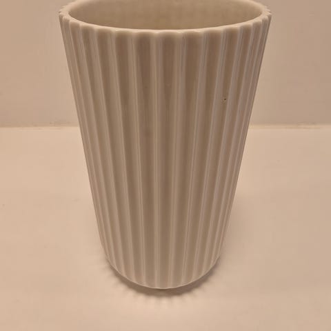 Klassisk smuk Lyngby vase fra Lyngby Porcelæn. Vasen er 20 cm høj. Mærket er kendt for sin ikoniske vase med riller – og bag det enkle ydre gemmer sig en stærk designarv, der stammer helt tilbage fra 1936. Brandet forener det klassiske og moderne med skandinavisk lethed og blik for detaljer.