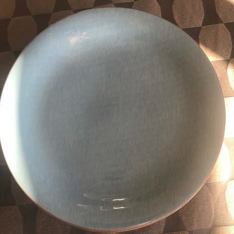 Rörstrand Primeur fad i porcelæn. Tallerkenen har en diameter på ca. 33 cm og er i en smuk blå farve. Egnet som serveringsfad. Bagsiden er stemplet med Rörstrand Sweden Primeur P 555 880.