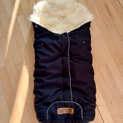 Nordlys vinter/efterårs kørepose sælges. Den kan forlænges med 25 cm så store børn også kan bruge den. Den er kun brugt et par gange. Der er et par pletter indeni efter fodtøj. Det er ikke forsøgt fjernet, men går sikkert af efter en vask. Nypris 799kr sælges for 450kr. Fra røg og dyrefrit hjem.