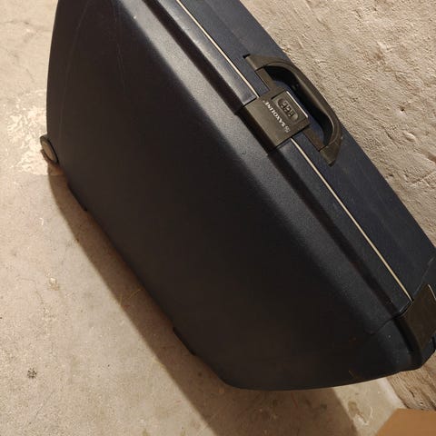 Kuffert med 4 hjul, i god stand. Den har kun tre mindre kosmetiske skønhedsfejl, som kan ses på billederne: