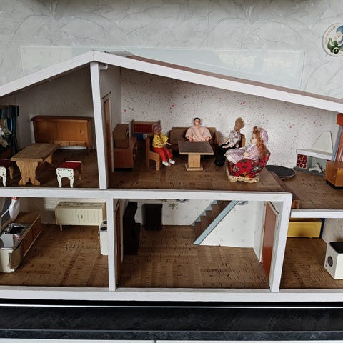 Antik dukkehus seng med baby