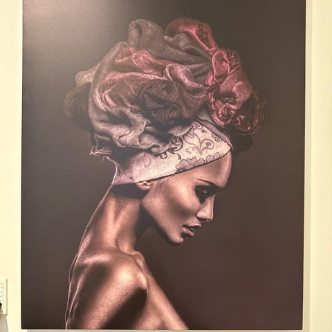 Plakat med kvindeportræt og blomster mørke nuancer