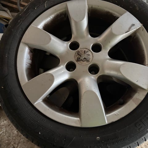 Sommerdæk på originale Peugeot fælge. Ikke kørt særlig meget, og masser af mønster på endnu.