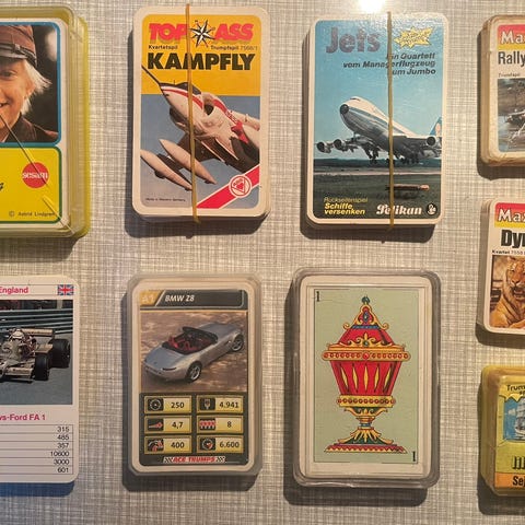 Internationale Entreprenørkøretøjer, Kvartetspil trumfspil nr 7836-6, kortspil, et gammelt kortspil, det er som nyt og i intakt æske for samlere ,desværre mangler det røde trumfkort deraf prisen