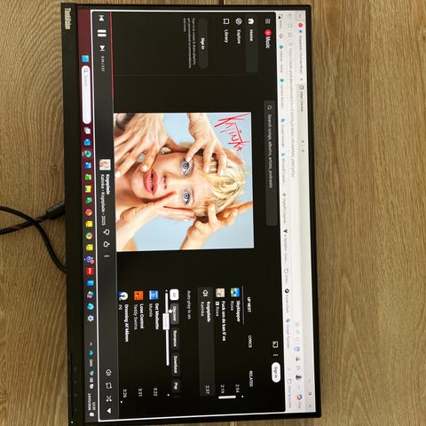 Lenovo ThinkVision skærm på 27 tommer i sort. Skærmen er velegnet til kontorarbejde, studiebrug eller generel hjemmebrug. Bagsiden viser VESA-monteringsmulighed til brug med skærmarm eller vægbeslag. Tilslutninger og øvrige tekniske specifikationer fremgår af billederne og bør kontrolleres ved behov. Justerbar arm medfølger, som på billedet.