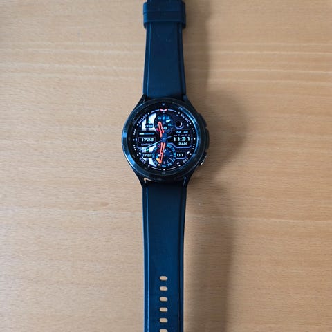 Samsung smartwatch til unisex brug i sort. Uret har rundt display og sort silikonerem med justerbar lukning. Bagsiden har integrerede sensorer til måling af aktivitet og helbredsdata. Medfølgende magnetisk oplader med USB-tilslutning. Velegnet til daglig brug og aktivitetsovervågning afhængigt af understøttede funktioner på modellen.