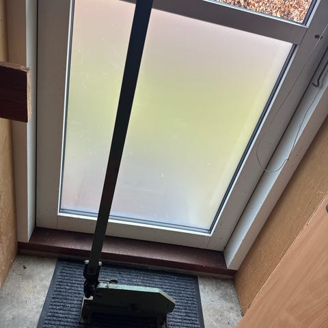 Manuel pladesaks til skæring af metalplader og fladjern. Betjenes med langt håndtag for øget kraftoverførsel. Fastgøres med bolte gennem soklen til arbejdsbord eller gulv for stabilitet under brug. Velegnet til værksted og hobbybrug, hvor der er behov for præcis afkortning af mindre metalemner.