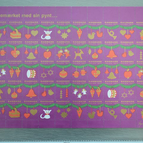 Danmark, postfrisk, Julemærker helark - 1953 - 1972, Ufoldet og utakket. Jeg ved ikke det er en form for produktionsfejl når man ikke får skåret mærkerne ud.
