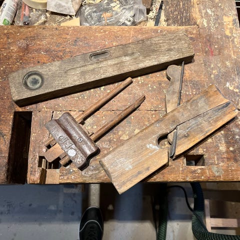 Drivtømmer. Alt på bordet og bænk sælges samlet