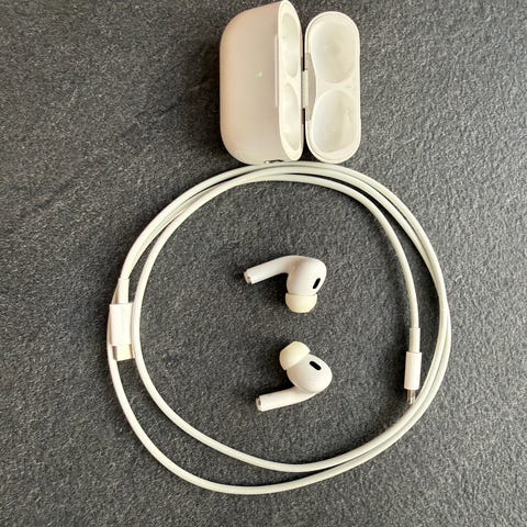 Sælger de her AirPods Pro to helt nye har lige åbnet dem har haft dem i stykke tid i skabet da jeg fik dem med i et abonnement helt nye og ægte og serienummer