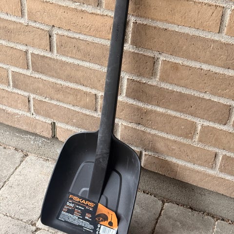 Fiskars Classic skovl med træskaft. Skovlen har et langt, lakeret træskaft og et sort skovlblad, egnet til almindelige have- og udendørsopgaver som flytning af jord, sand eller sne. Klassisk udformning med lige skaft, der giver godt greb ved arbejde i have, indkørsel eller på terrasse.