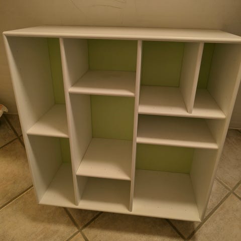 Fineste reol til ophæng på børneværelset eller andet sted. Beslag medfølger.
