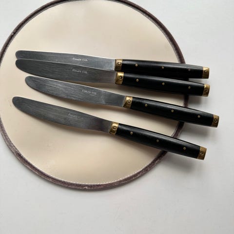 5 flotte og elegante retro knive med savtakker, og skaft i sort bakelit i et meget smukt og behageligt design. Ligger godt i hånden. 22 cm.