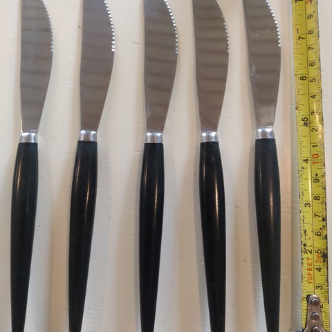 3 retro / vintage knive med savtakker og skaft i sort bakelit. 20 cm.