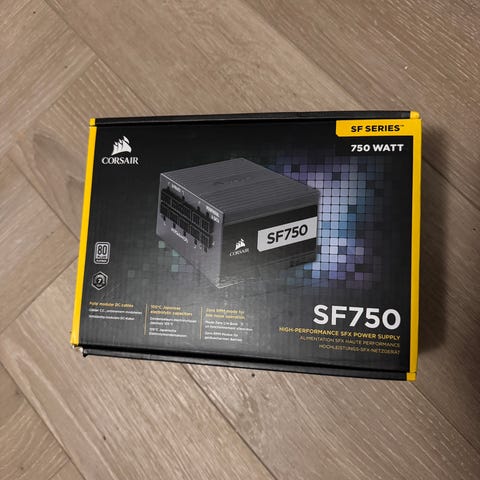 Corsair SF Series SF1000 strømforsyning på 1000W i SFX‑format. Enheden er modulær og beregnet til kompakte pc‑byg med SFX‑kompatibelt kabinet. Strømforsyningen leveres med 80 Plus Platinum‑certificering ifølge emballagen og understøtter moderne komponenter via flere PCIe‑, SATA‑ og hovedstrømskabler. Velegnet til systemer, hvor der ønskes høj effekt i et lille formfaktor‑kabinet.