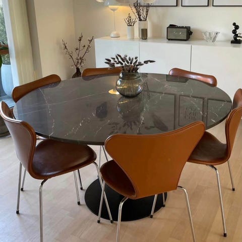 Bordplade i massiv sandfarvet meleret flot marmor.