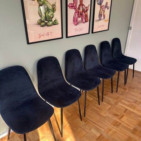 4 ILVA Timon spisebordsstole – blå/grøn – god stand