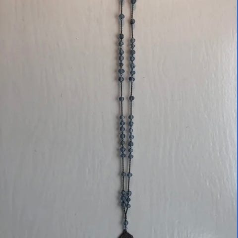 Lukket Kæde med blå firkantede perler med lille vedhæng i samme perler