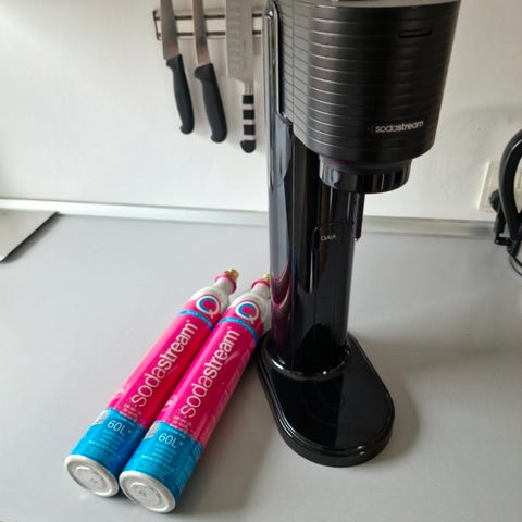 Sælger to helt nye og ubrugte SodaStream CO₂-patroner (Quick Connect / Pink-hurtigkobling). Perfekte til SodaStream ART, DUO og TERRA og andre modeller der bruger pink kobling.