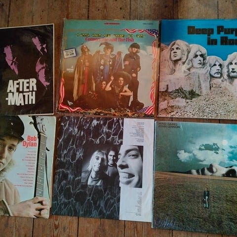 6 rigtig fine vinyl LP plader,med Beatles, Rolling stones, og the Monkees.