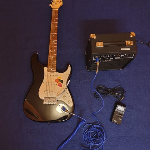 med guitarstrop og ledning.